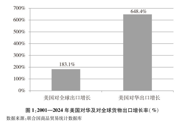 美国对华出口增速较着快于其对全球出口。中国插手世界商业组织以来,美国对华出口快速增加,中国成为美国主要的出口市场。按照结合国统计数据,2024年美国对华货色出口额1435。5亿美元,较2001年的191。8亿美元增加648。4%,远远高于同期美国对全球183。1%的出口增幅(图1)。